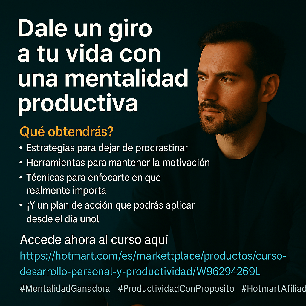 Este curso de desarrollo personal y productividades una guía práctica y transformadora que te enseña a tomar las riendas de tu tiempo, tus hábitos y tu mentalidad.